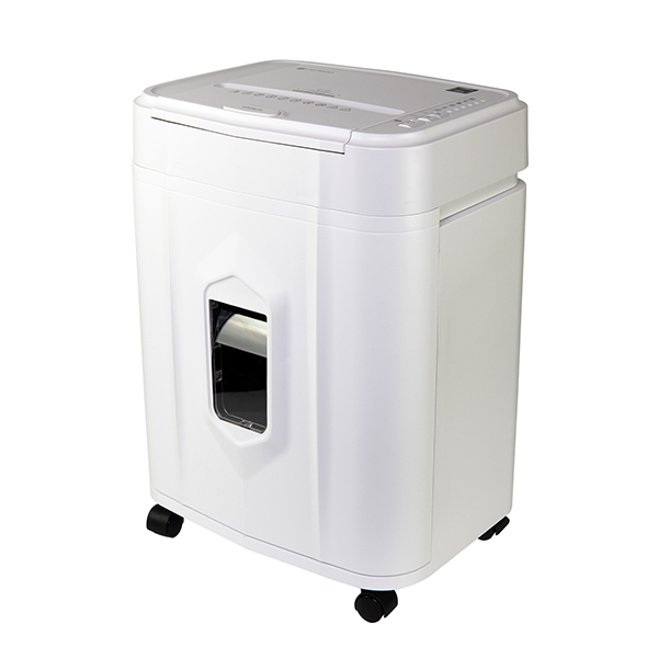 - Универсальность: уничтожает бумагу, скобы, скрепки и пластиковые карты (не предназначен для ежедневной переработки металлических элементов — рекомендуется предварительно удалять их).